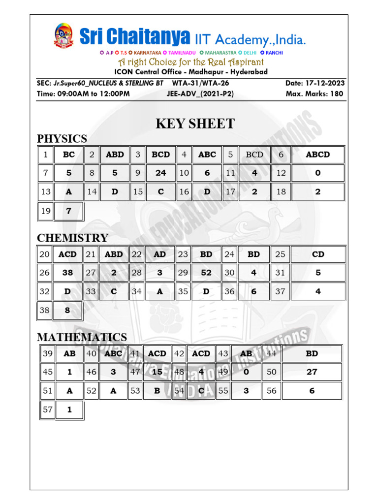 Sri Chaitanya IIT Academy 17-12-2023_Jr.S60_NUCLEUS & STERLING BT_Jee-Adv(2021-P2)_WTA-31&WTA-26_Key & Sol’s