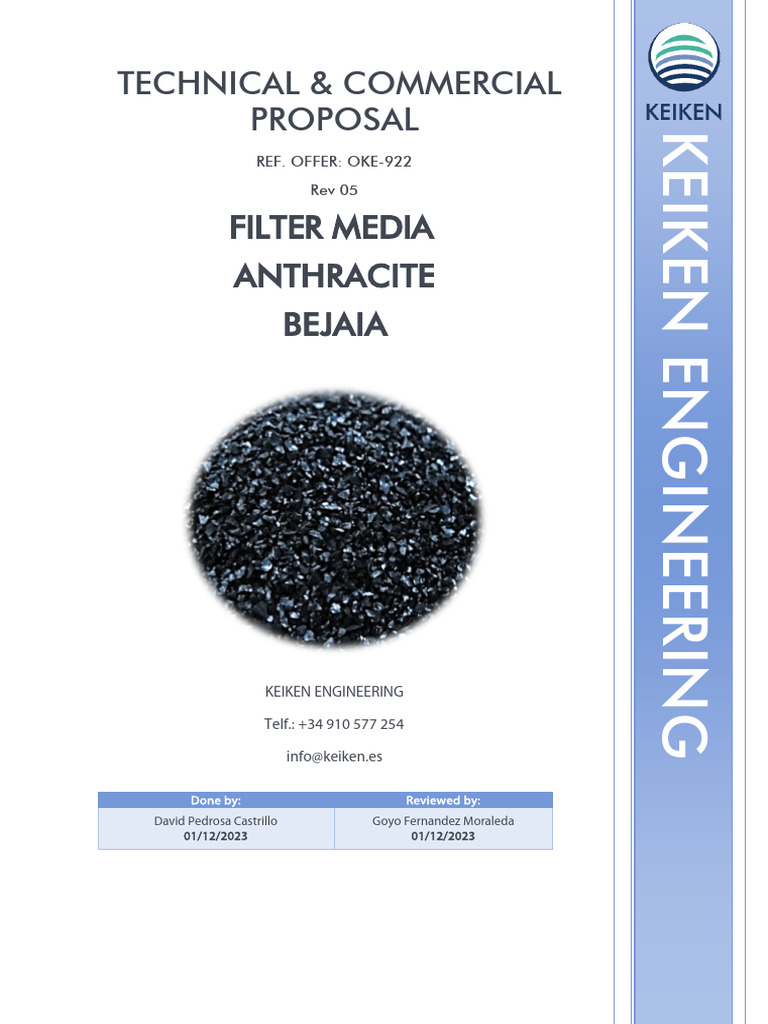 Offer for the supply of ANTRACITE Filter Media for its projects in Algeria.