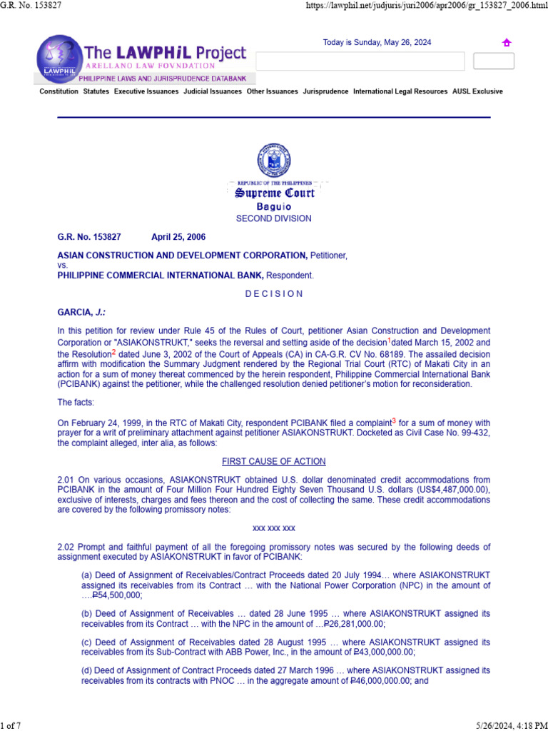 Corporation or "ASIAKONSTRUKT," seeks the reversal and setting aside of the decision1dated March 15, 2002 and