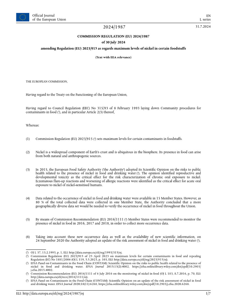 amending Regulation (EU) 2023/915 as regards maximum levels of nickel in certain foodstuffs