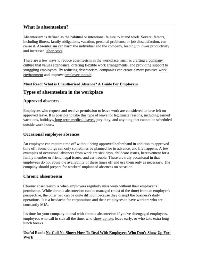 permission. While chronic absenteeism can be managed (most of the time) from an employer's