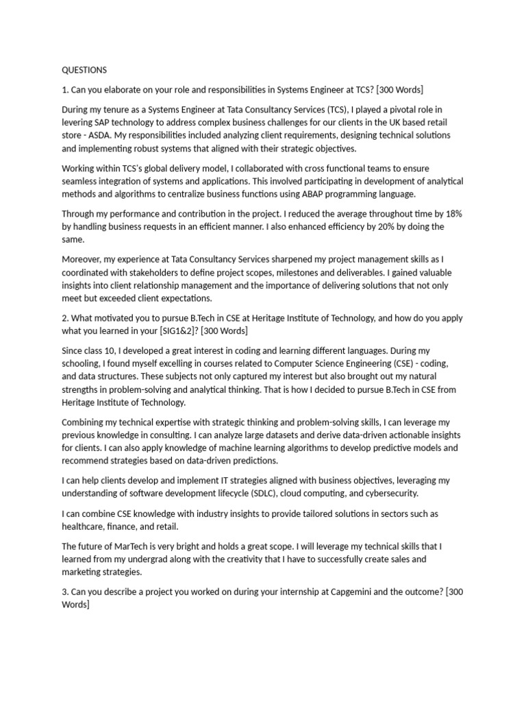 1. Can you elaborate on your role and responsibilities in Systems Engineer at TCS? [300 Words]