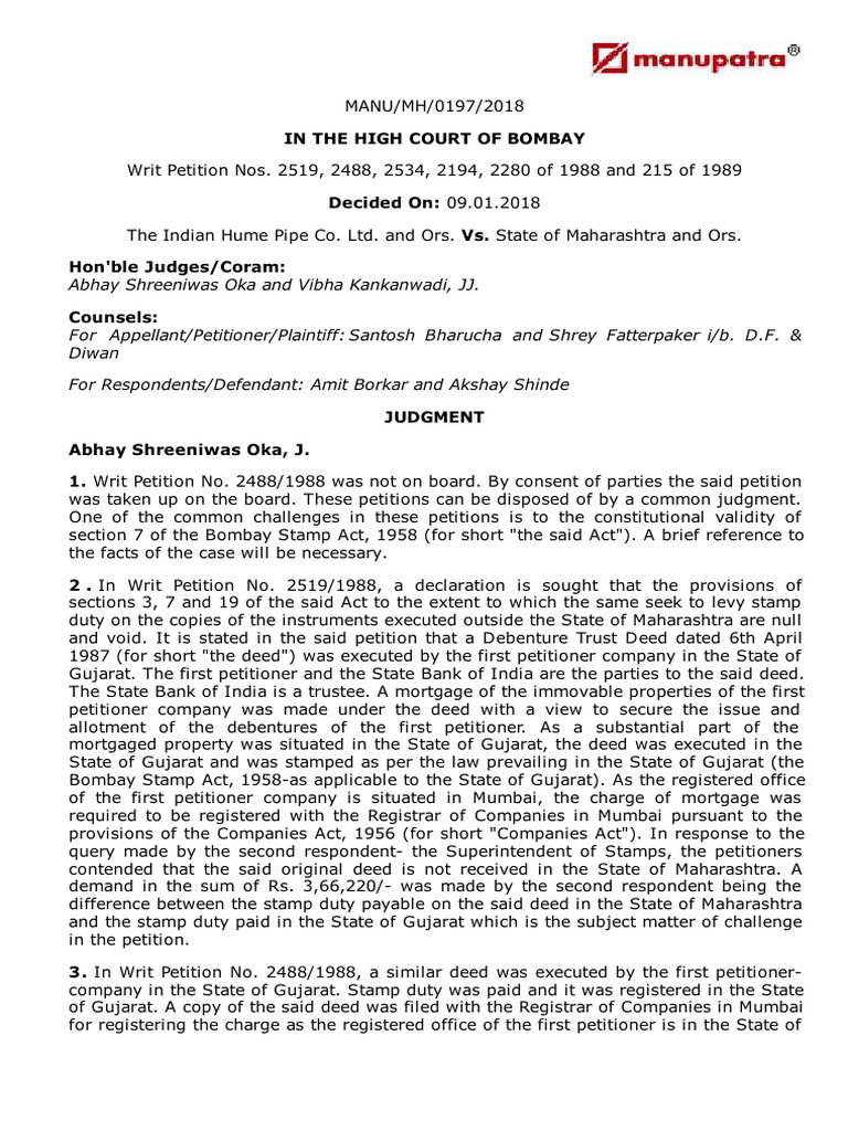 The Indian Hume Pipe Co. Ltd. and Ors. Vs. State of Maharashtra and Ors.