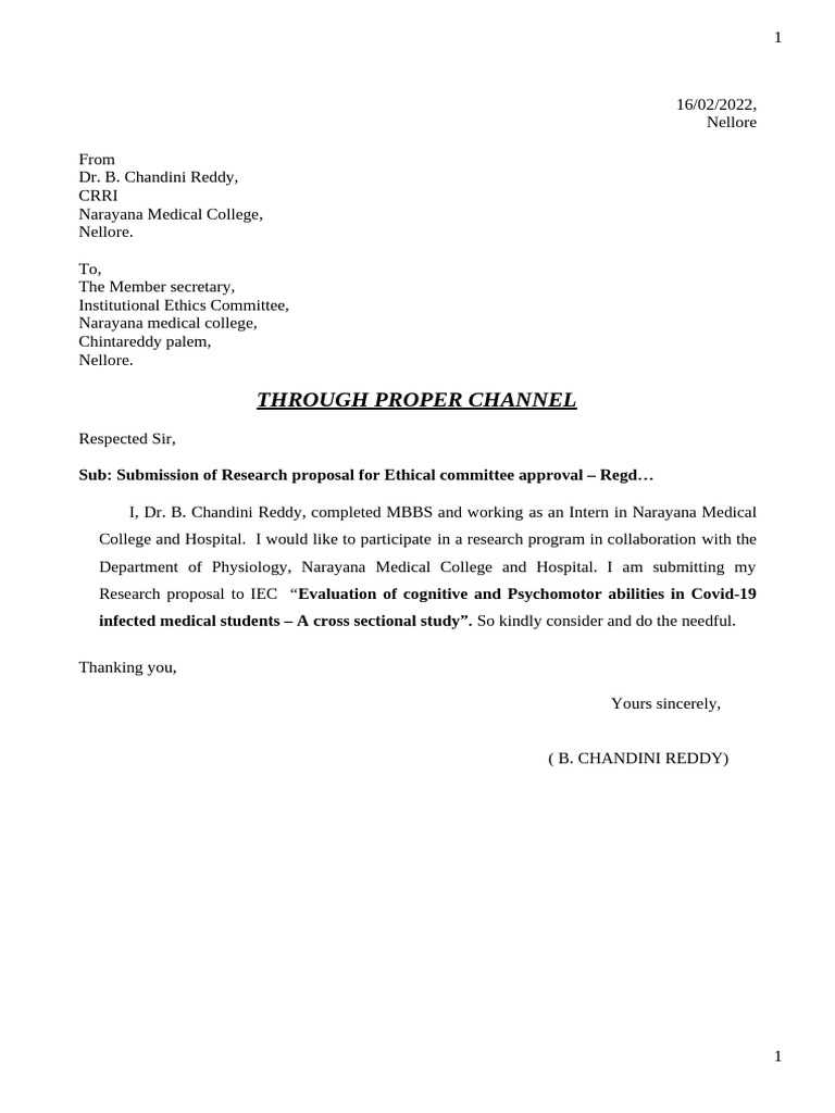 Sub: Submission of Research proposal for Ethical committee approval – Regd…