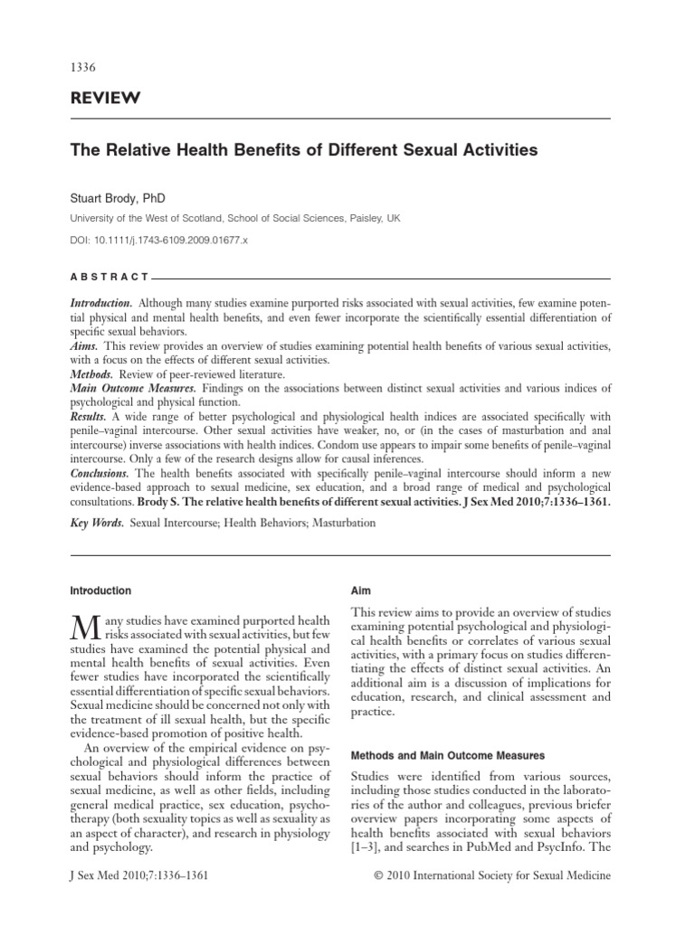 Journal of Sexual Medicine - 2010 - Brody - The Relative Health Benefits of Different Sexual Activities