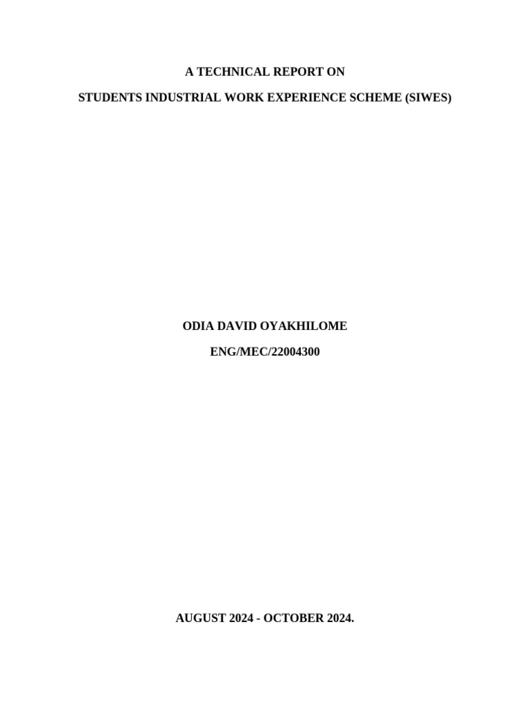 Finally to my Institution based Supervisor Engr. Isaac Oamen for his support. Thank you all, I am highly