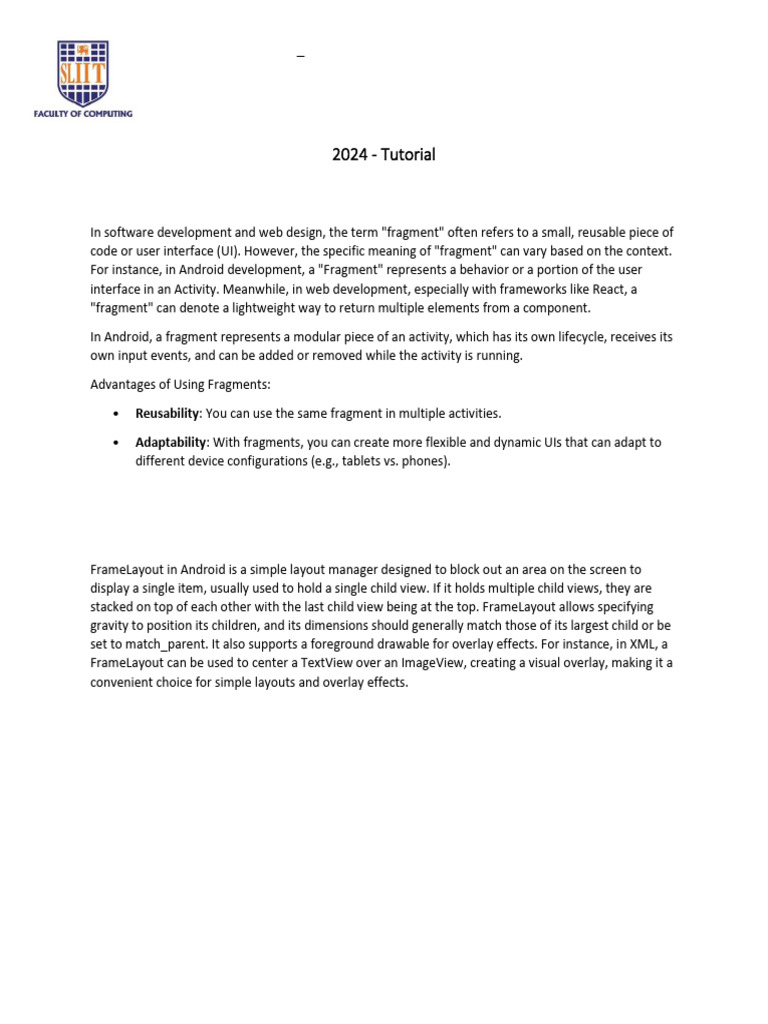 • Adaptability: With fragments, you can create more flexible and dynamic UIs that can adapt to