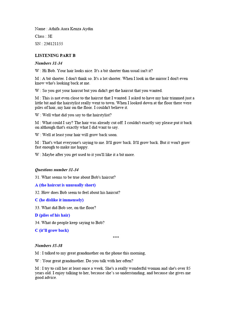 M : What could I say? The hair was already cut off. I couldn't exactly say please put it back