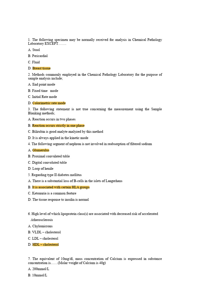 10. Which of the following is LIKELY to be affected if a non-fasting sample is taken for