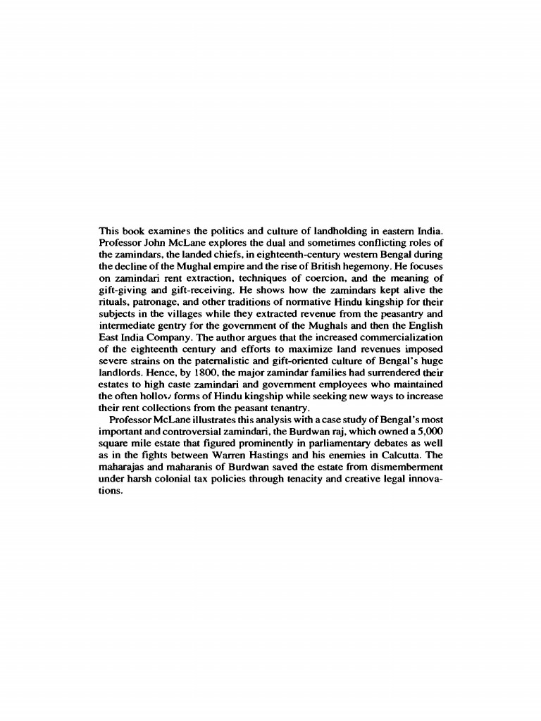 Land and Local Kingship in Eighteenth-Century Bengal-John R. McLane - Cambridge University Press (1993)