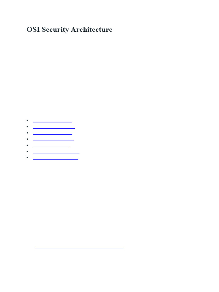 The OSI (Open Systems Interconnection) Security Architecture defines