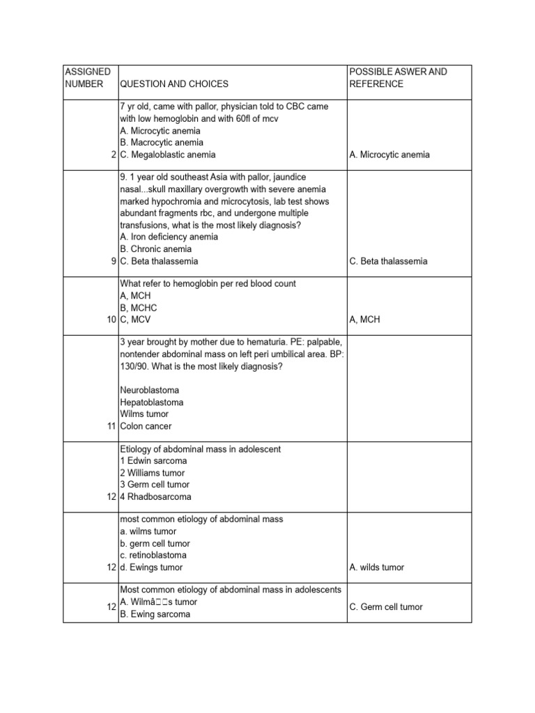 2 C. Megaloblastic anemia A. Microcytic anemia