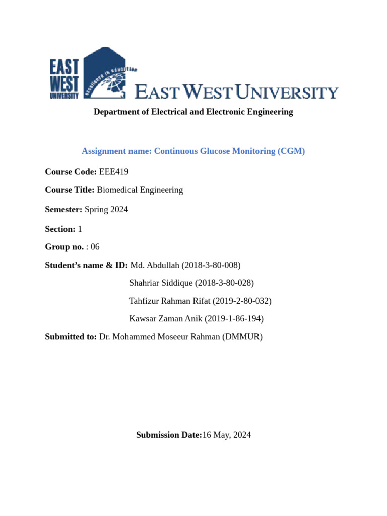 Assignment name: Continuous Glucose Monitoring (CGM)