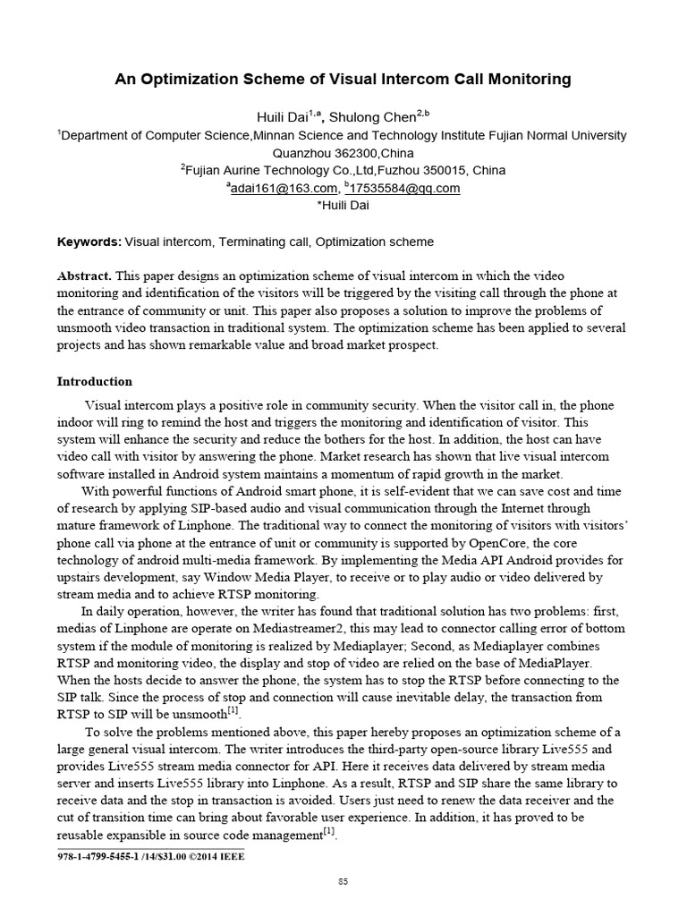 Keywords: Visual intercom, Terminating call, Optimization scheme