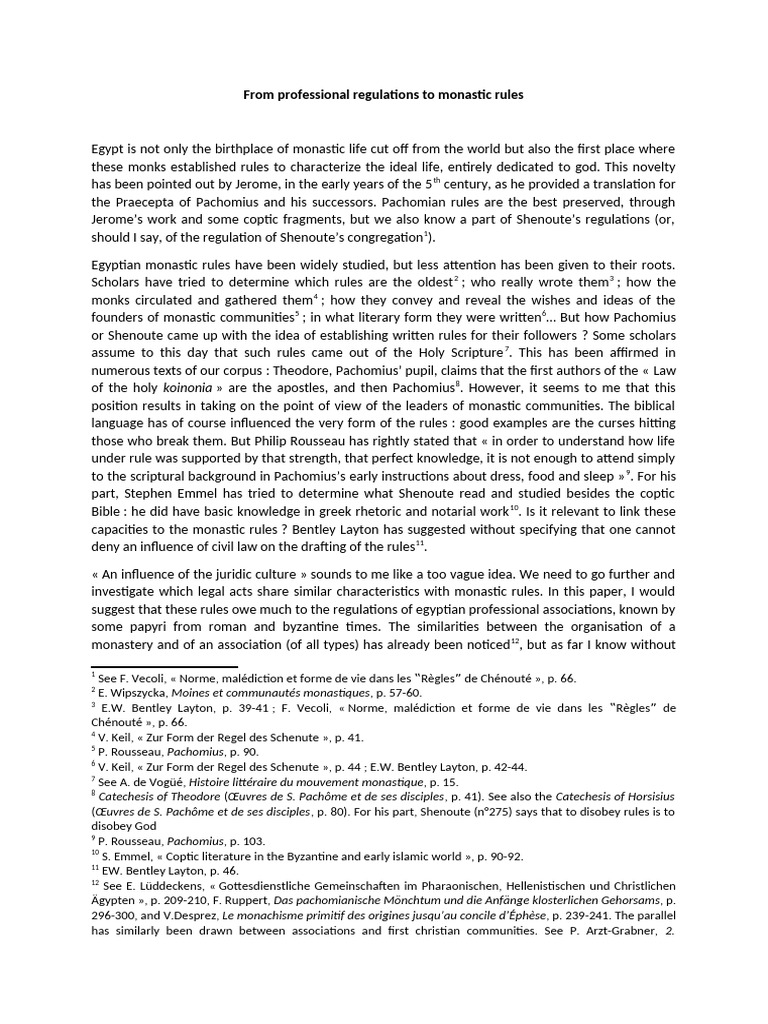 F. Vecoli, « Norme, malédiction et forme de vie dans les ‟Règles” de Chénouté », p. 84.