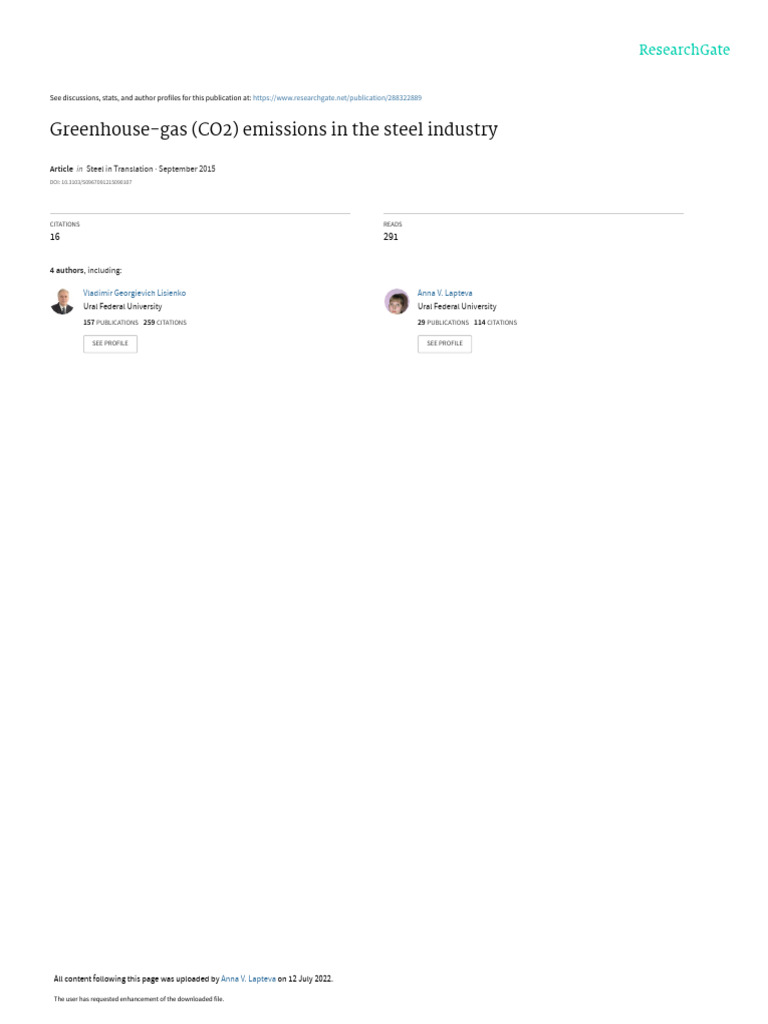 sponds to the number of the operation in the techno emissions in the steel industry, Metallurg, 2011, no. 12,