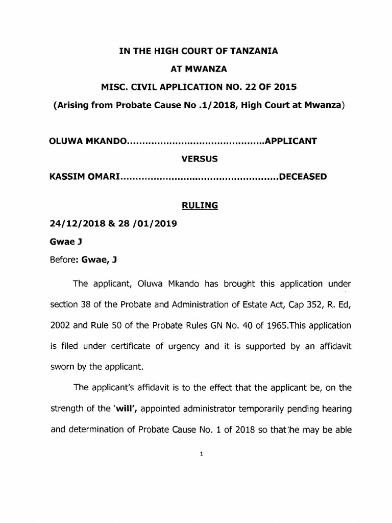 2002 and Rule 50 of the Probate Rules GN No. 40 of 1965.This application