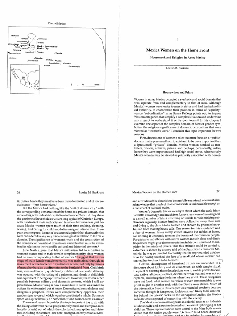But the Mexica had nothing like the "cult of domesticity," with a construct of colonial males.