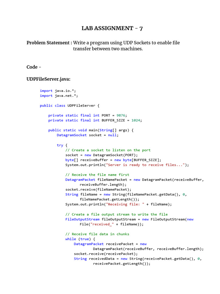 Problem Statement : Write a program using UDP Sockets to enable file