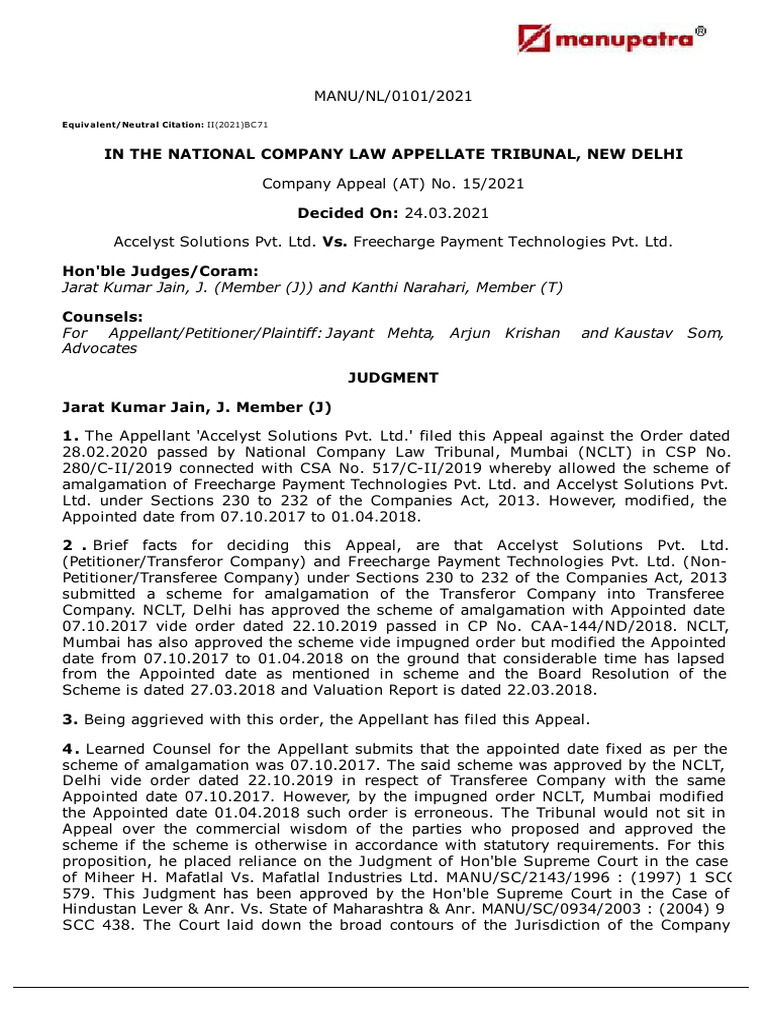 amalgamation of Freecharge Payment Technologies Pvt. Ltd. and Accelyst Solutions Pvt.