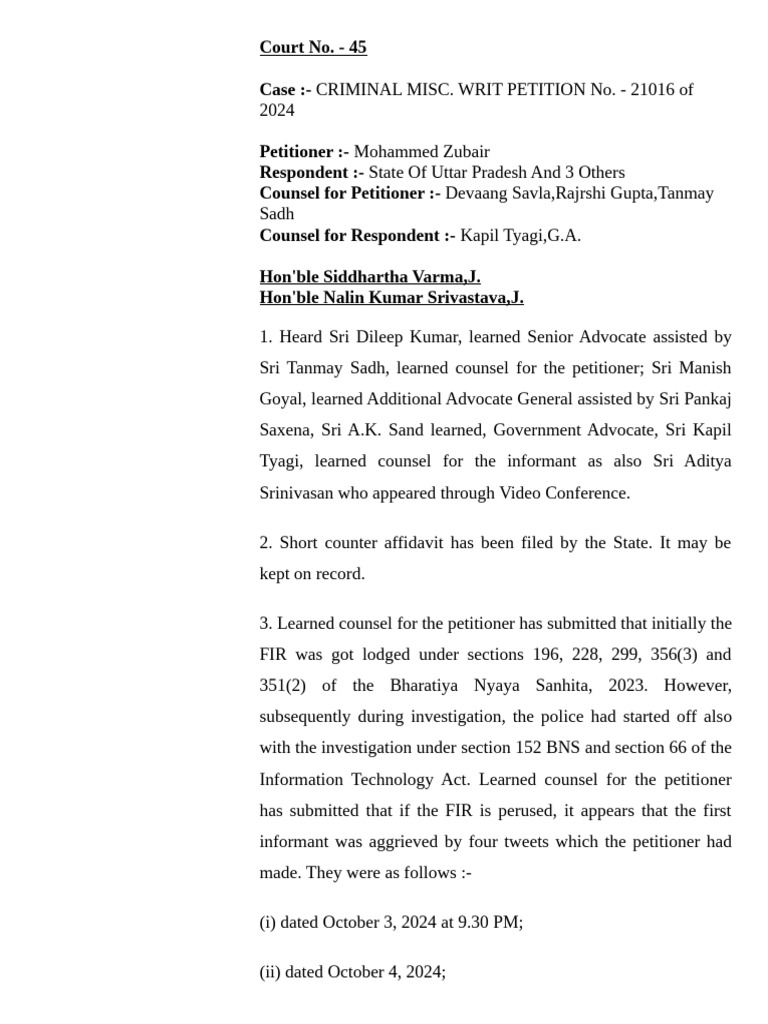 (Mohammed Zubair vs. State of NCT of Delhi & Ors.) on