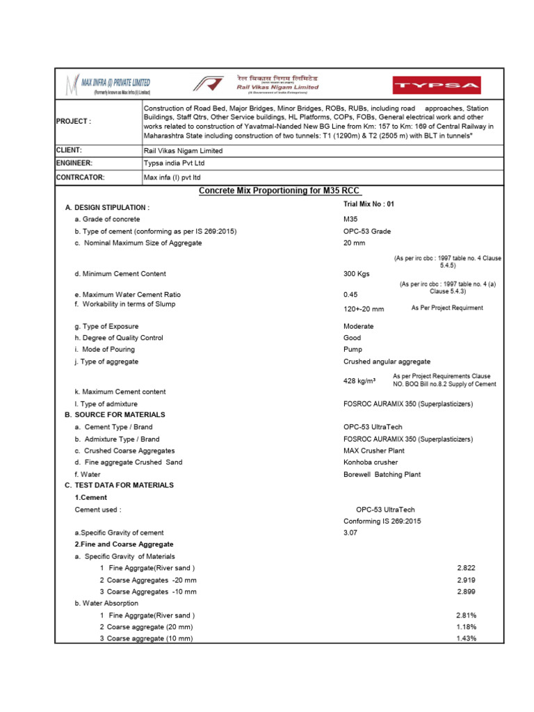 A. DESIGN STIPULATION : Trial Mix No : 01