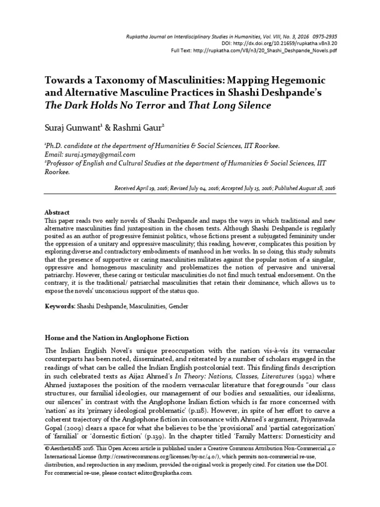 alternative masculinities find juxtaposition in the chosen texts. Although Shashi Deshpande is regularly
