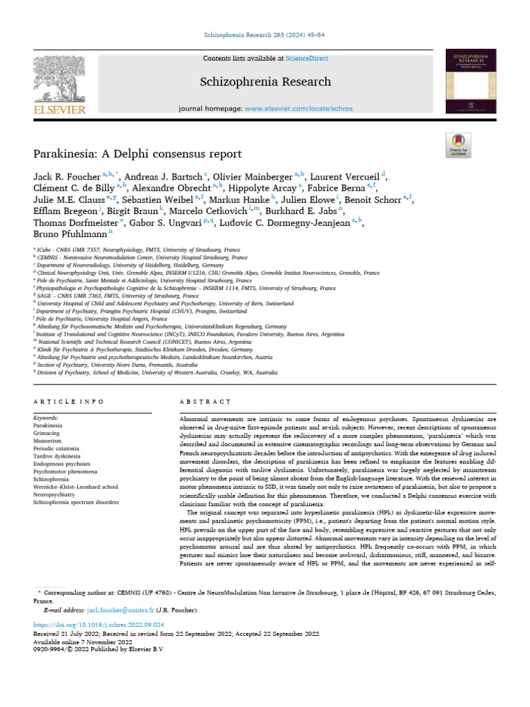 Wernicke–Kleist–Leonhard school motor phenomena intrinsic to SSD, it was timely not only to raise awareness of parakinesia, but also to propose a