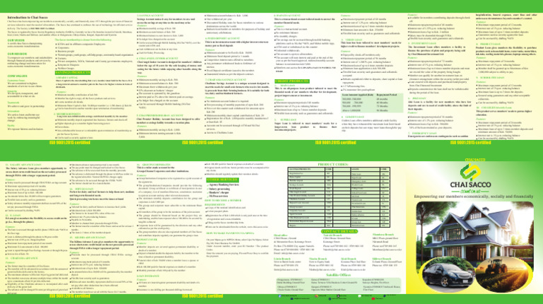 Introduction to Chai Sacco Savings Account makes it easy for members to save and One withdrawal per year. This is a transactional account tailored made to answer the Available for members contributing deposits through check unforeseen circumstances beyond a member’s control.