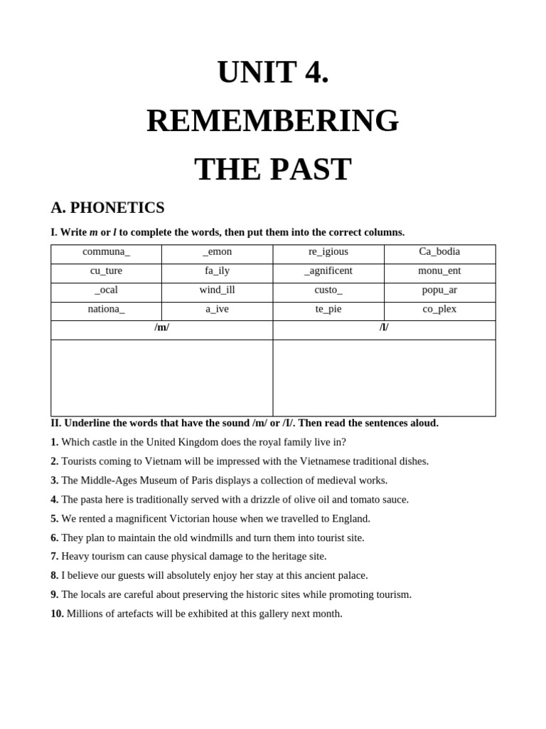 Bài tập Global Success 9 (Mai Lan Hương - Hà Thanh Uyên) 4. UNIT 4. REMEMBER THE PAST