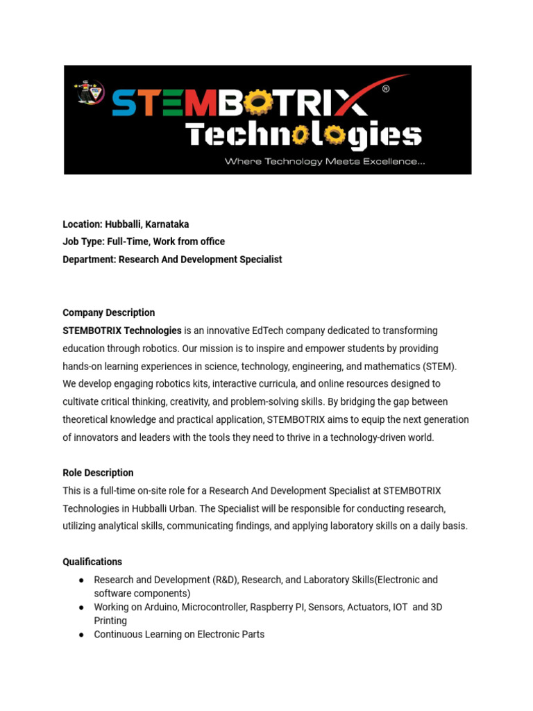 [email protected]Join us at STEMBOTRIX Technologies and be a part of a team that is shaping the future through