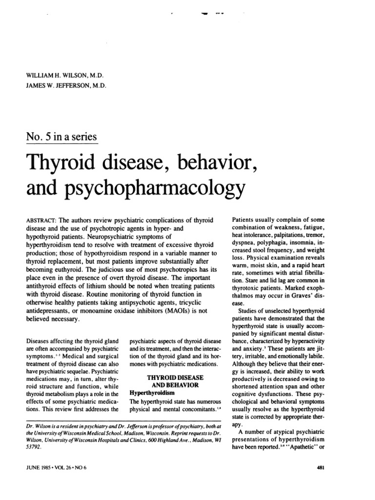 Thyroid Disease, Behavior, and Psychopharmacology 1985