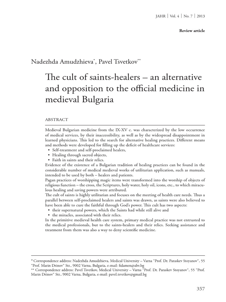 Nadezhda Amudzhieva, Pavel Tsvetkov: The cult of saints-healers – an alternative and opposition...