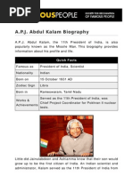 about Dr.A.P.J. Abdul kalam biography, books, quotes, facts family history etc.