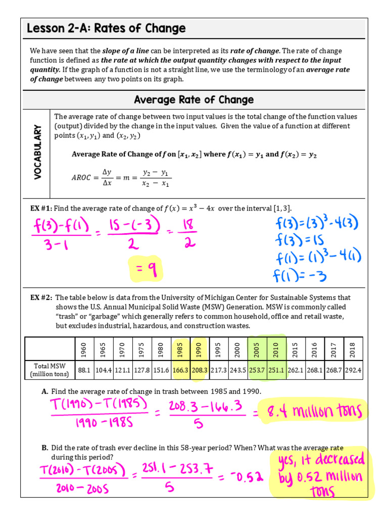 EX #1: Find the average rate of change of 𝑓𝑓 𝑥𝑥 = 𝑥𝑥 3 − 4𝑥𝑥 over the interval [1, 3].