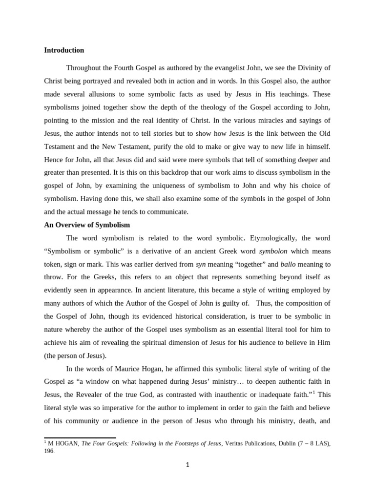 gospel of John, by examining the uniqueness of symbolism to John and why his choice of
