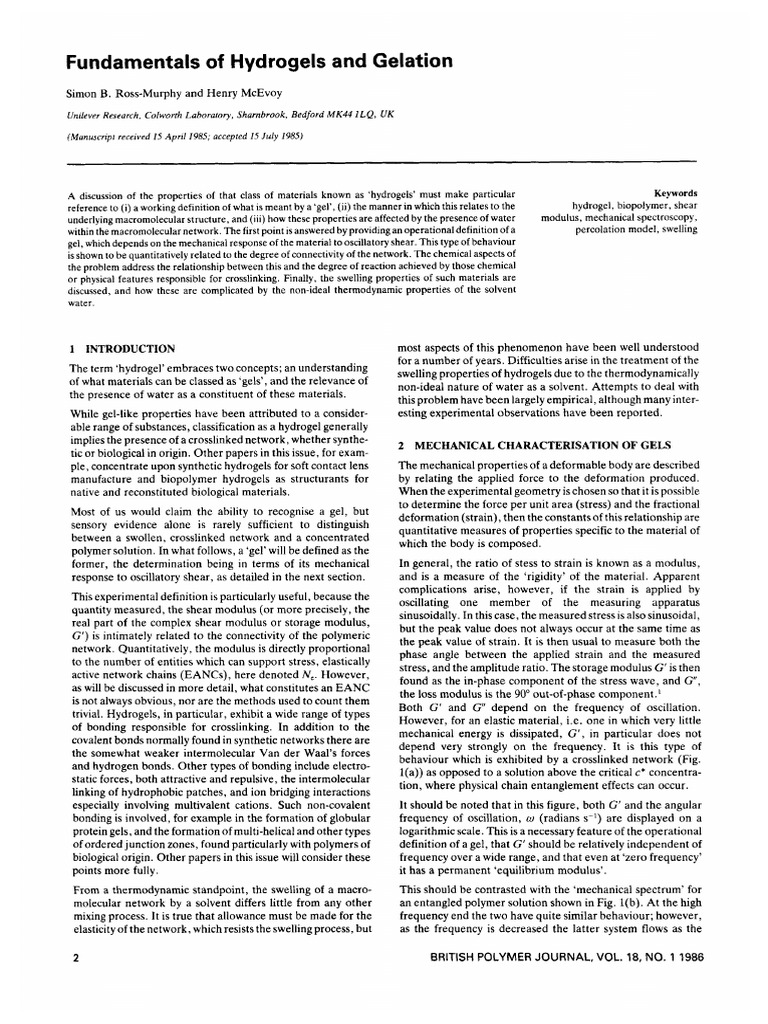 Cornell. 25 Clark, A.H. & Ross-Murphy, S.B., Adv. Polym. Sci., to be published.