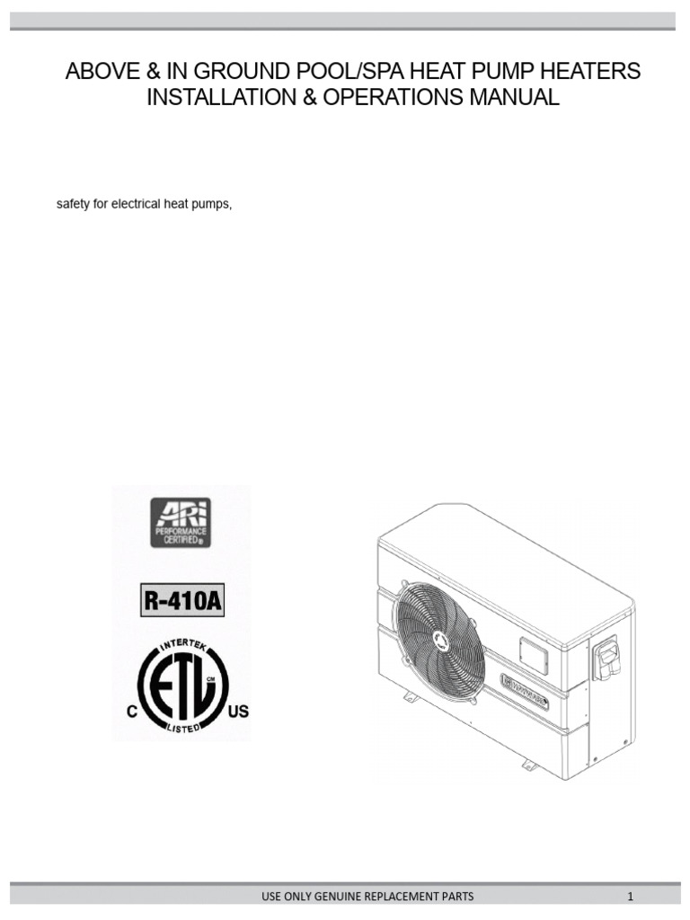 section of this manual prior to servicing. Always disconnect power circuit before connecting the heat pump, or