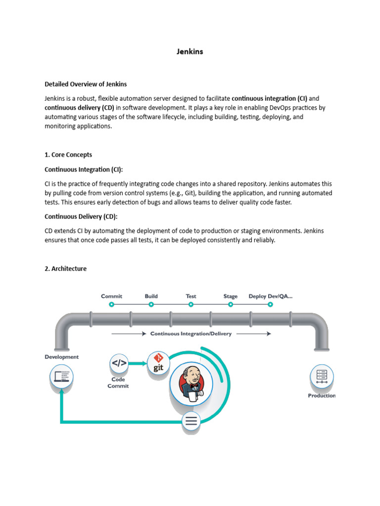 (e.g., Docker, Kubernetes, AWS, GitHub, Maven, Gradle, Selenium). This extensibility makes Jenkins