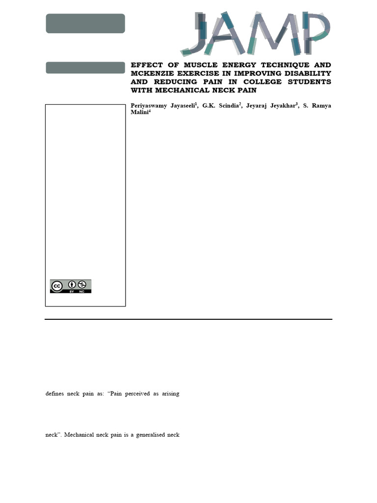 5. Mishra N, Mishra A. Effectiveness of muscle energy