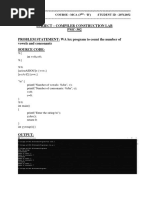 c = getc( fp ) ; while ( c != EOF ) { if ( c == '\n') nlines++ ; nc++ ; c = getc ( fp ); } fclose( fp ); if ( strcmp(argv[1], "-w") == 0 ) printf("%s: %d characters \n", filename, nc ); else if ( strcmp(argv[1], "-l") == 0 ) printf("%s: %d lines \n", filename, nlines ); else printf("%s: %d characters %d lines\n", filename, nc, nlines ); Logical OR is represented by || in the code above. Logical AND is represented by && in C. The function strcpy() is one of many library string handling functions. It takes two strings as arguments and copies the second argument to the first i.e. it operates as a form of string assignment. In C you CANNOT assign strings as: filename = "prog.c" /* WRONG */ strcpy( filename, "prog.c"); /* CORRECT */ The function strcmp() is another string handling function. It takes two strings as arguments and returns 0 if the two strings are the same. As for assignment, you cannot test string equality with == i.e. if (filename == "prog.c") /* WRONG */ if (strcmp(filename,"prog.c")==0) /* CORRECT */ Note: The above program crashes if you run it as: % count w or % count l This is because in these cases we failed to test if there was a 3rd argument containing the filename to be processed. We simply try to access this non-existent argument and so cause a memory violation. This gives rise to a so-called "bus error" in a Unix environment. As an exercise, insert code to correct this failure.