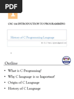 ALGOL introduced in 1960s is the first programming language to use block structure. Based on ALGOL in 1967 , Martin Richards developed a language called BCPL (Basic Combined Programming Language) used mainly for writing system software. In 1970, Ken Thompson developed a language called B based on the features of BCPL. B language was used to create early versions of UNIX. BCPL and B are type less languages. In 1972, Dennies Ritchie developed Traditional C language at the Bell Laboratories based on the features of ALGOL, BCPL and B together with the features of data types and some powerful features. In 1978 , the book The C Programming Language was published by Brian Kerningham and Dennis Ritchie after which the language was known as K & R C. In 1983, the American National Standards Institute (ANSI) established a committee to define a standard for C. The committee approved the version of C in 1989 and the current version "ANSI C" evolved.