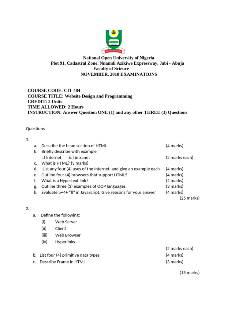 INSTRUCTION: Answer Question ONE (1) and any other THREE (3) Questions
