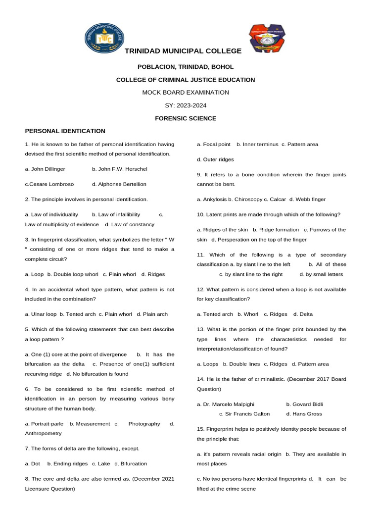 8. The core and delta are also termed as. (December 2021 c. No two persons have identical fingerprints d. It can be