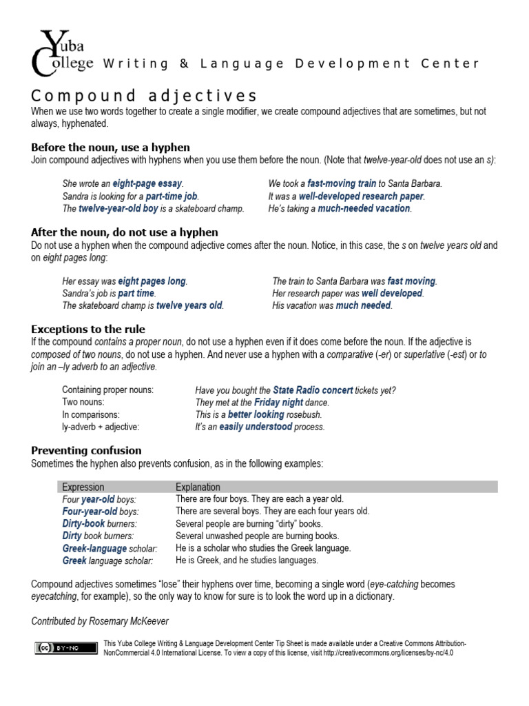 This Yuba College Writing & Language Development Center Tip Sheet is made available under a Creative Commons Attribution-