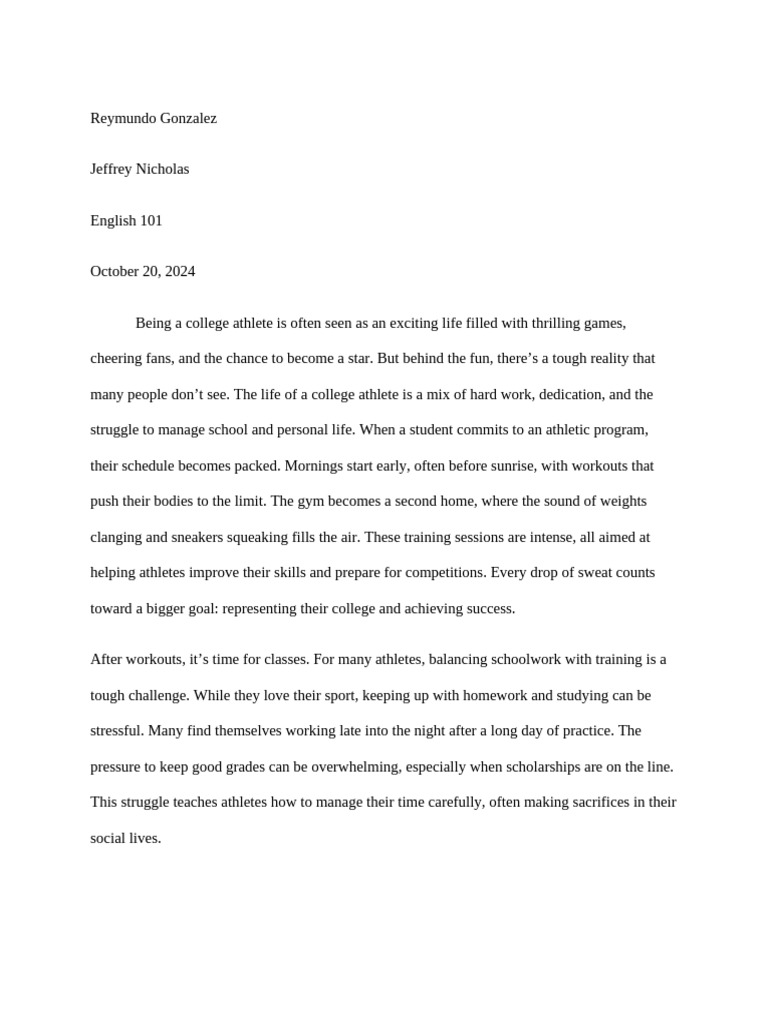 In conclusion, being a college athlete is a unique experience filled with both struggles and