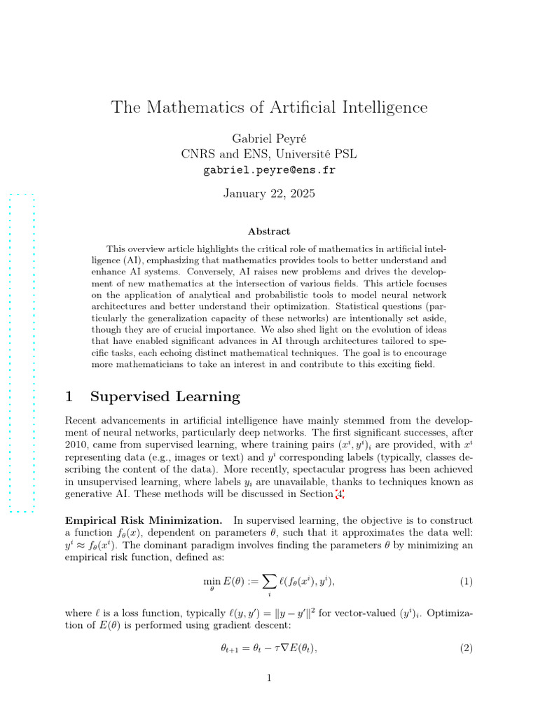 ligence (AI), emphasizing that mathematics provides tools to better understand and