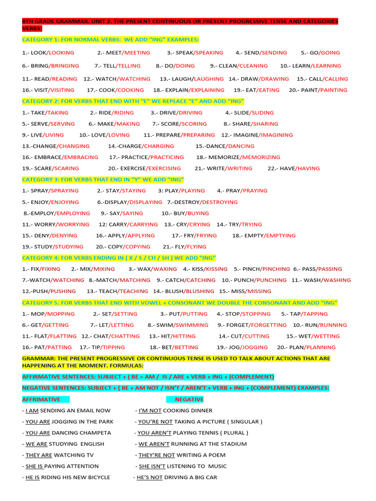 THE PRESENT CONTINUOUS OR PRESENT PROGRESSIVE TENSE AND CATEGORIES