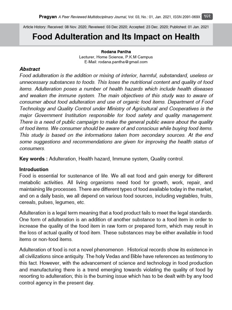 Pragyan A Peer Reviewed Multidisciplinary Journal, Vol: 03, No.: 01, Jan.