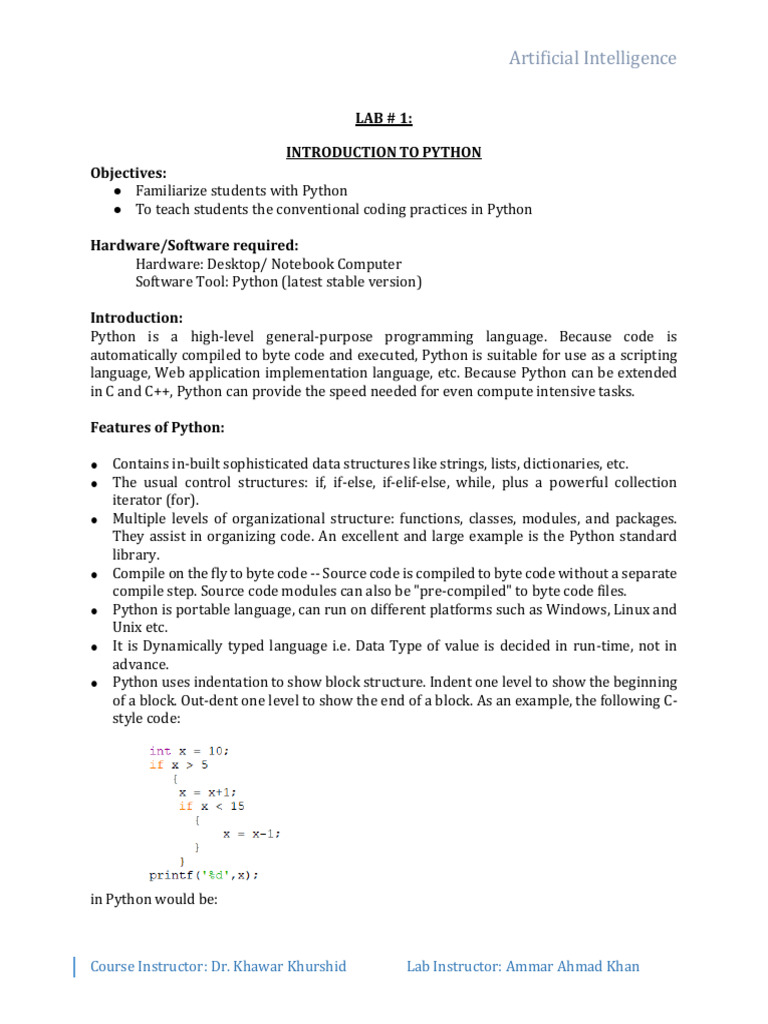 Course Instructor: Dr. Khawar Khurshid Lab Instructor: Ammar Ahmad Khan